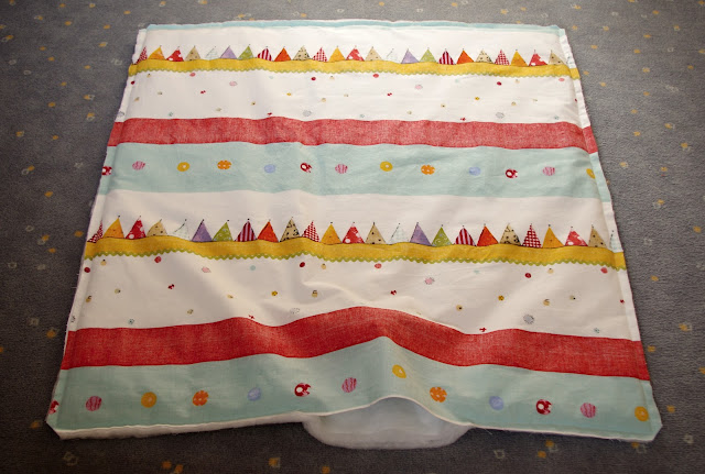 nechejte někde na rovné straně 20 cm volných na protočení! Odstříhněte švové přídavky v rozích.